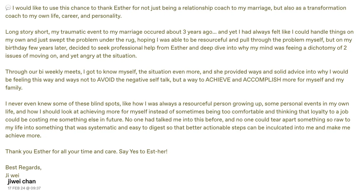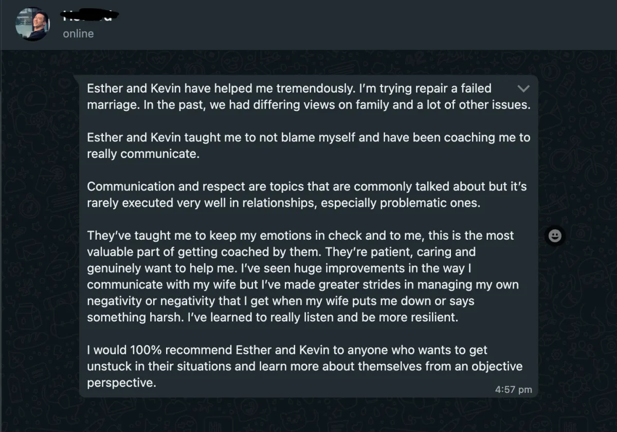 I'm Esther Ku, a marriage and relationship coach and speaker/author with over 10 years of experience helping men transform their marriages.